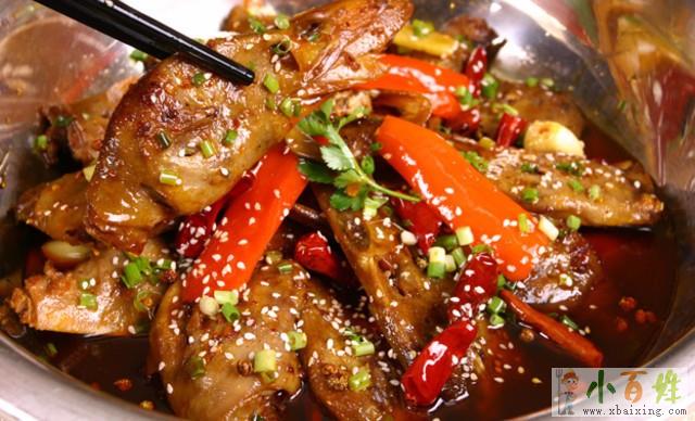 干锅辣鸭头选料精细、考究,提前秘料腌渍入味,油品正宗www.xbaixing.com。鸭头、油品的选用直接决定着菜品的口味。辅配特有香辣配料,香辣等级:微辣、中辣、高辣。其口味风味醇厚、香辣爽口、香而不腻、老少皆宜,去湿开胃,四季可食、 理气、 舒血、滋补,因健康美味深受大众喜爱来源www.xbaixing.com。本菜系干锅香辣鸭头选用优质鸭头,提前秘料腌渍入味,辅配特有香辣配料,川菜风味醇厚,入口香辣脆绵,回味长久。